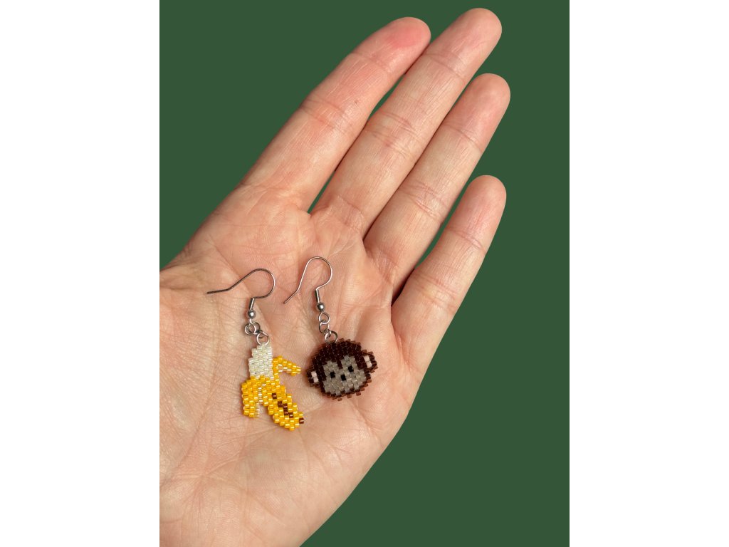 Jedna náušnice má podobu roztomilé opičky, druhá šťavnatého banánu – dohromady tvoří dokonalou dvojku pro všechny, kdo se nebojí být vidět.