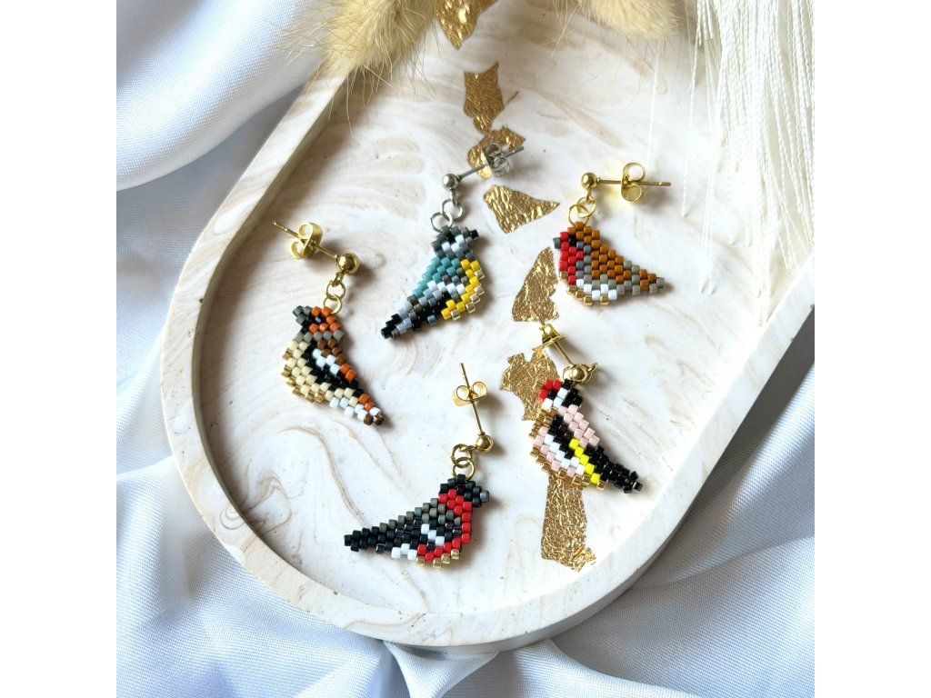 Tyto jemné a zároveň hravé náušnice s motivem ptáčků jsou ručně vyrobené z kvalitních japonských korálků Miyuki. Precizní zpracování dává vyniknout detailům i harmonii barev.