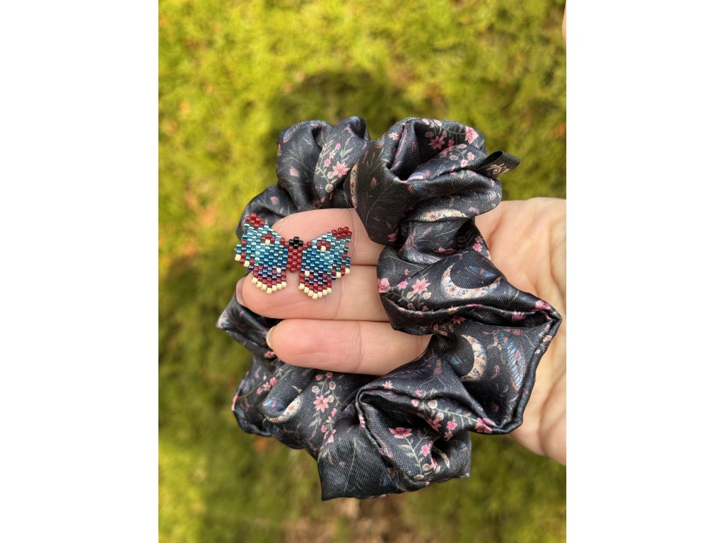 Míša a Verča - Epoxyma a PíďaStyle - skleněné korálky a satén - úchvatný vzor s můrami a květy = to si musíš zamilovat!