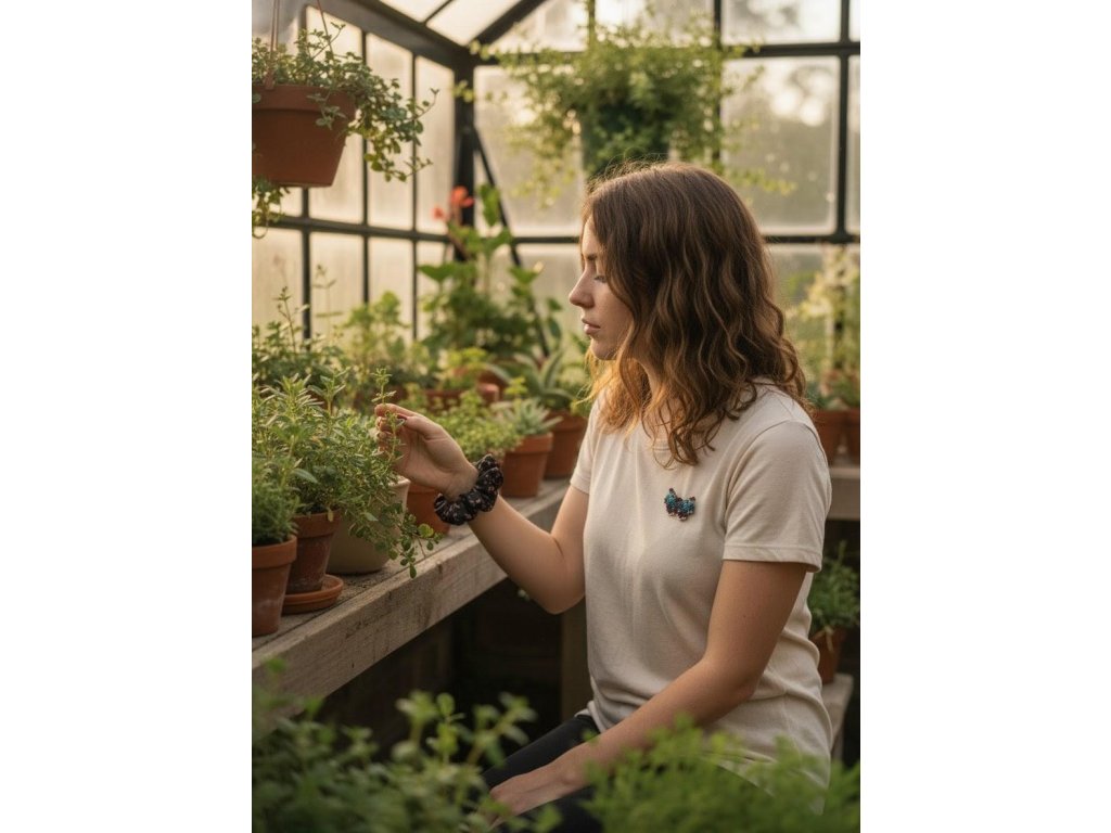 A protože kouzlo má být sdílené, vznikla tato kolekce ve spolupráci s českou značkou Epoxyma.cz (Míša). Společně jsme propojily svět látek a svět korálků Miyuki — precizních japonských korálků, které se blyští jako kapky rosy.