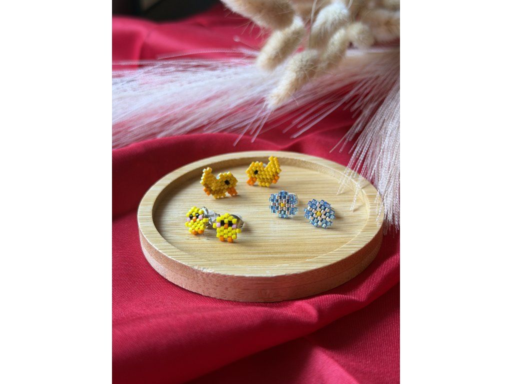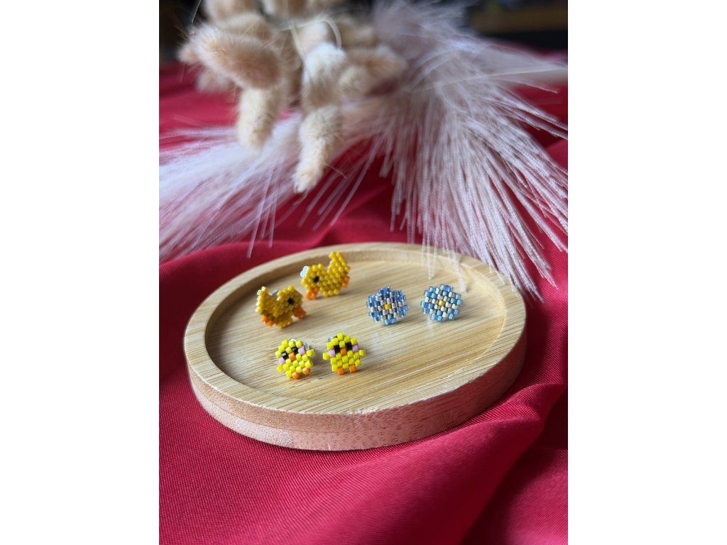 – troje peckové náušnice: modré kytičky, roztomilá kuřátka a veselé kačenky