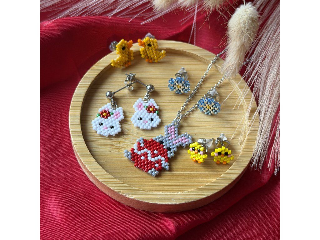 Najdete v ní ručně šité šperky z prestižních japonských skleněných korálků Miyuki, které vynikají svou kvalitou, leskem a precizností. Každý kousek je tvořen s láskou a důrazem na detail, aby vám dělal radost nejen o svátcích.